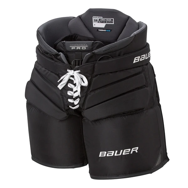 Die Bauer Pro Goal Pant ist unsere Top-Hose. Es verleiht Torhütern einen Pro-Look, bietet dazu eine verbesserte Haltbarkeit, Flexibilität und Schutz. Es verfügt über 10-Zoll-Beine und CURV plus PORON zum Schutz. Es ist unglaublich langlebig und mit dem Extension Fit System vollständig in den Beinen verstellbar. Level Elite Größen S, M, L, XL Maßgefertigte Passform Extension Fit Loop +1 Gürtel 2 Belt System Innenfutter Thermocore Hüfte Comfort Edge Anatomical With Internal PORON Knie-Flügel Internal Loop Oberschenkelprotektor Curv 3 PC Amp Leg Channel Dynamic 2-Flex With Double Adjustment Pillows