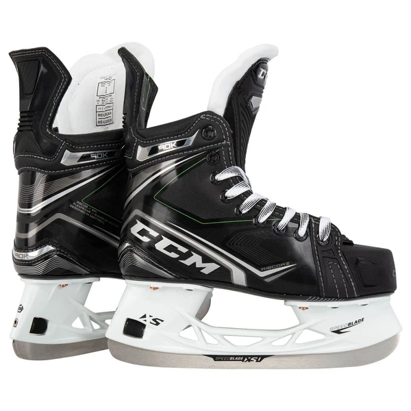 Ganz neu für 2021 sind CCMs neueste Iteration der Ribcor Skate-Linie, die CCM Ribcor 90K Ice Hockey Skates! Dieser neue Schlittschuh wurde speziell entwickelt, um die Agilität auf dem Eis zu maximieren und eine perfekte Balance zwischen Komfort und Leistung zu bieten. Beginnend mit dem Viertelpaket verfügen die Ribcor 90K Hockey Skates über ein zusammengesetztes Viertelpaket mit FlexFrame-Technologie. Dieser ergonomische Schuh mit 3D-Last bietet einen großartigen Vorwärtsflex und seitliche Stabilität, sodass Spieler die meiste Kraft und Effizienz aus ihren Schritten herausholen können. Die FlexFrame-Technologie im Schuh bietet eine konturierte und eng anliegende Passform rund um den Fuß. Darüber hinaus verleiht diese Technologie dem Stiefel ein variables Steifigkeitsprofil von 160-170 und bietet eine hervorragende Passform in jeder Situation. Neu für dieses Jahr bei den Ribcor 90k Hockey Skates ist die Möglichkeit, Ihre Zunge mit dem neuen XS-Zungensystem anzupassen. Die austauschbare zweilagige Zunge mit 7 mm Filz und einem asymmetrischen Flexpunkt passt sich besser Ihrer Fußform an und bietet gleichzeitig fortschrittlichen Spitzenbissschutz. Und wenn Sie eine dünnere oder dickere Zunge bevorzugen, ermöglicht das XS-System einen einfachen Austausch der Zunge und bietet Ihnen eine anpassbare Passform aus der Box. Auf der Innenseite verfügen die Ribcor 90K Hockey Skates über einen TotalDri Comfort Liner. Dieses leistungsstarke, feuchtigkeitsableitende Material hält die Spieler während des gesamten Spiels so trocken und komfortabel wie möglich. Hand in Hand mit diesem Liner sind die ADPT-Memory-Schaumstoffe. Diese symmetrischen Schaumstoffe schmiegen sich eng, aber bequem um die Füße des Spielers und bieten eine anatomische Passform und Komfort für alle unterschiedlichen Fußformen. In der unteren Hälfte der Ribcor 90K Hockey Skates finden Sie den SpeedBlade XS Halter! Auf der Rückseite jedes Halters finden die Spieler die sogenannte BladeLock-Technologie von CCM. Dies ist ein formschlüssiges Zifferblatt, das die Klinge fest am Halter befestigt und verhindert, dass sich die Klinge während des Spiels löst. Dieses Design bietet den Spielern wiederum eine konsistente und maximale Energieübertragung bei jedem Schritt. Für zusätzlichen Komfort sorgt das CCM Ortholite-Fußbett für erhöhten Halt. Zusammen mit dem neuen SpeedBlade XS-Halter sind die XS1 Edelstahl-Läufer für die Senior/Intermediate-Modelle und XS Steel für die Junior-Modelle. Diese Läufer bieten einen lang anhaltenden Vorsprung für langfristige Leistung. Diese haben auch 12% mehr Höhe als Standardklingen. Diese Höhenerhöhung ermöglicht es den Spielern, tiefer in ihre Schwünge sowie in geraden Linien einzutauchen und so die Höchstgeschwindigkeit zu erhöhen. Mit dem neuen XS-Zungensystem und Upgrades in fast jedem Aspekt des Skates sind die CCM Ribcor 90K Ice Hockey Skates für den High-Level-Skater, der Schutz, Komfort und Leistung weiter verbessern möchte!