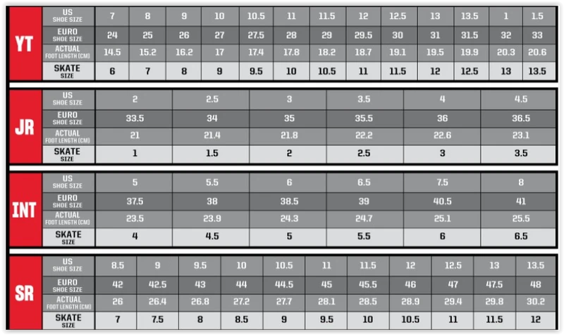 Die CCM Tacks 9350 Inline Hockey Skates sind eine gute Wahl, wenn du mit dem Sport anfangen möchtest. Sie sind so konzipiert, dass sie den harten Stößen beim Streethockey standhalten. An diesen CCM Inline Hockey Skates , ist ein hard Boot befestigt. Wenn du auf eine hohe Kraftübertragung und eine gute Knöchelunterstützung Wert legst, ist diese Hartschalenkonstruktion perfekt für dich. Die CCM Inline Hockey Skates fallen normal aus. Aus diesem Grund empfehlen wir dir, die Skates in deiner normalen Schuhgröße zu wählen.