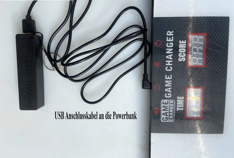 – mit dem USB Cable kann man den Game Changer an eine „Powerbank“ anschließen