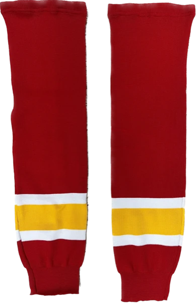Hochwertige Eishockeysocken in den Farben Rot/Weiß/Gelb.